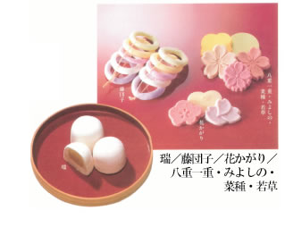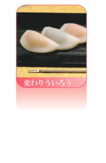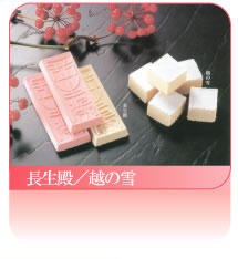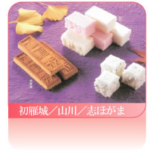 らくがんの名の起こりにはいろいろの説があります。中国の「軟落甘」という菓子の軟を略したものもという説、「落甘」といわず「落雁」となつたのは、当時黒ごまをち らしていたらしく、その様子が舞いおりる雁に似ているところから、近江八景の一つで ある「堅田落雁」になぞらえ「落雁」になったというものなど説があります。